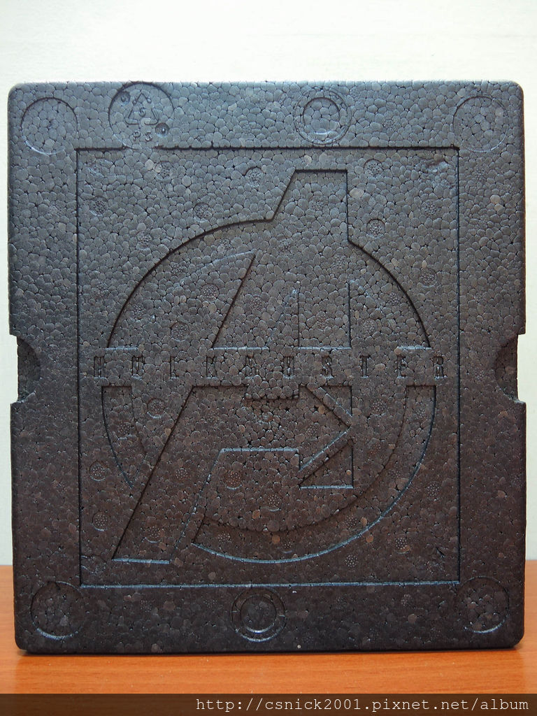 保麗龍外盒-保麗龍外盒封面也有復仇者聯盟標誌,保麗龍刻意弄成黑色的感覺是想營造出鐵製的fu!!(怎感覺我一直在介紹箱子...)