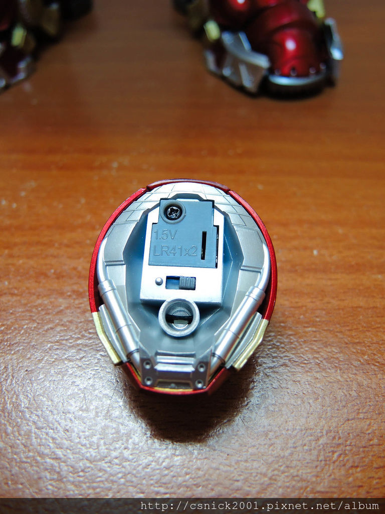 頭部拆下來後可以看到背面有電燈開關跟電池裝卸處!!