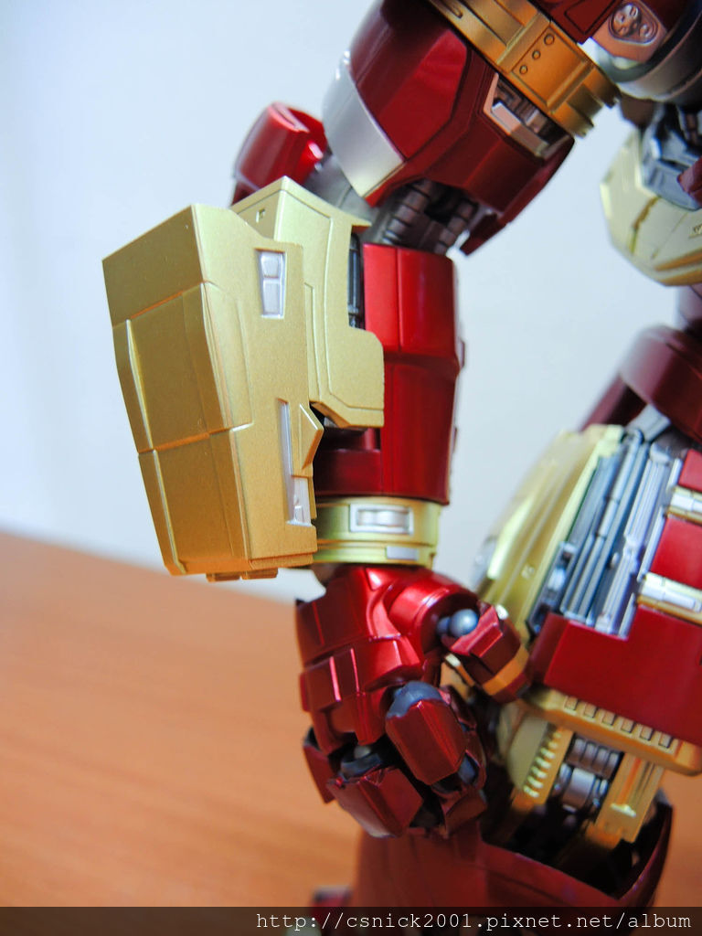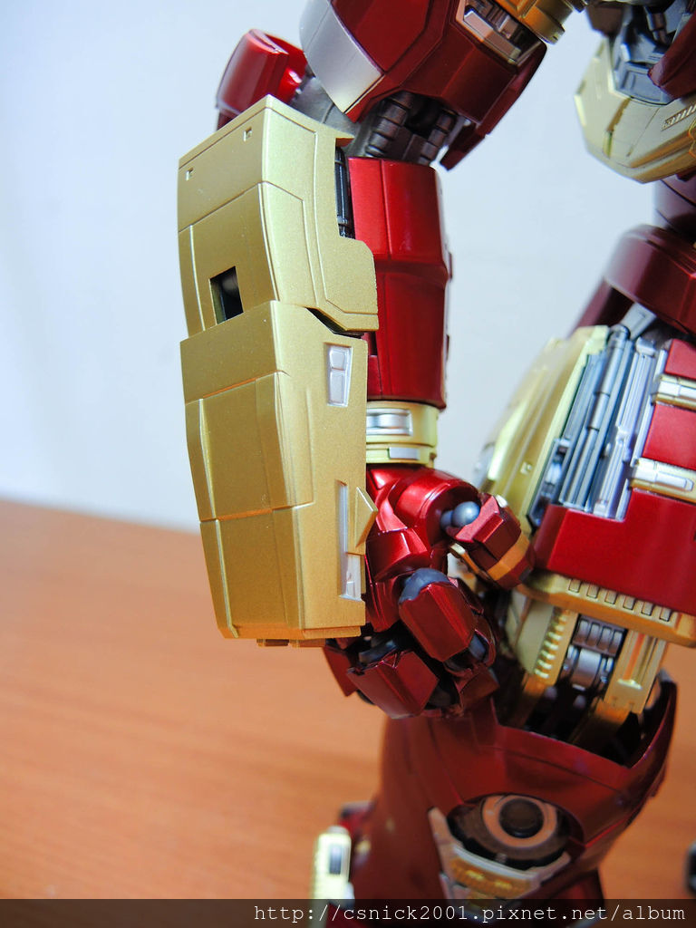 手臂上有金色護甲,電影裡面的設定還藏有飛彈發射器在裡面!!