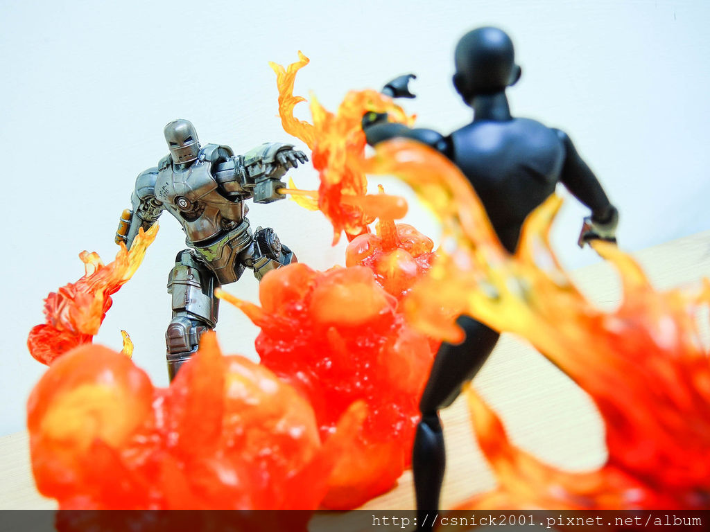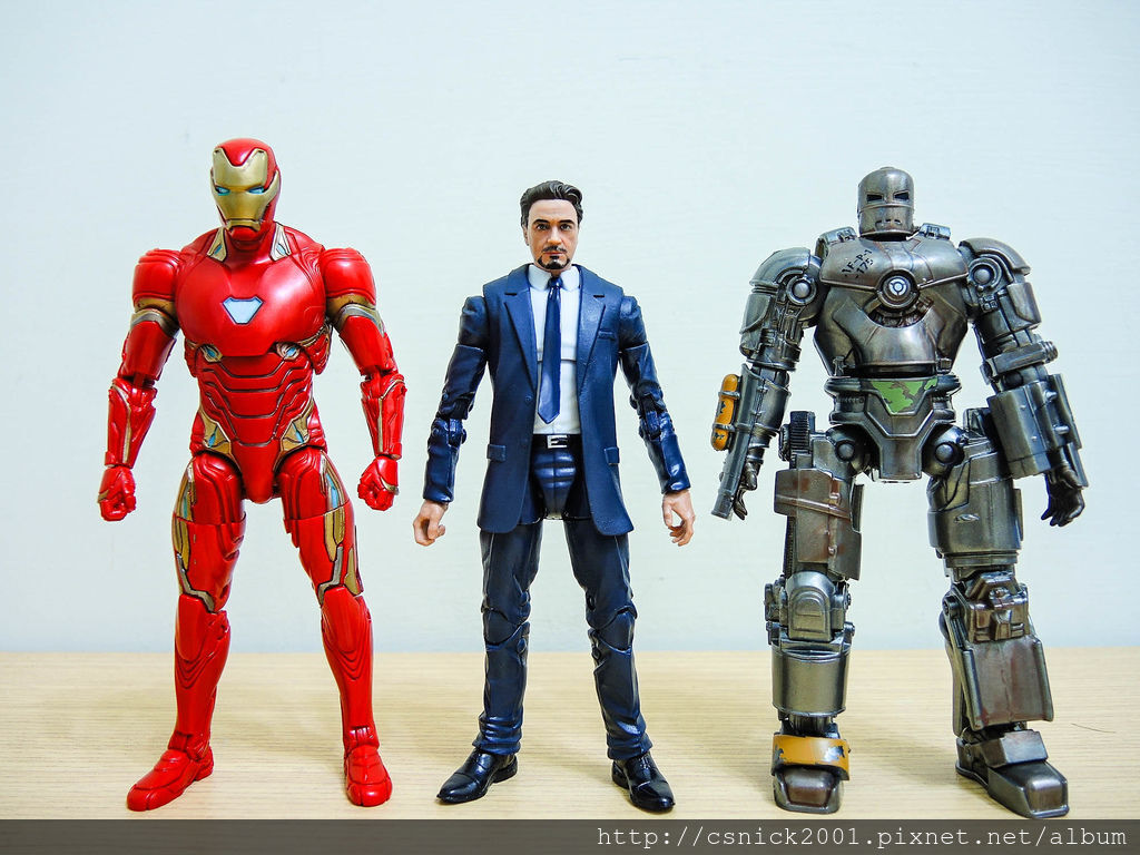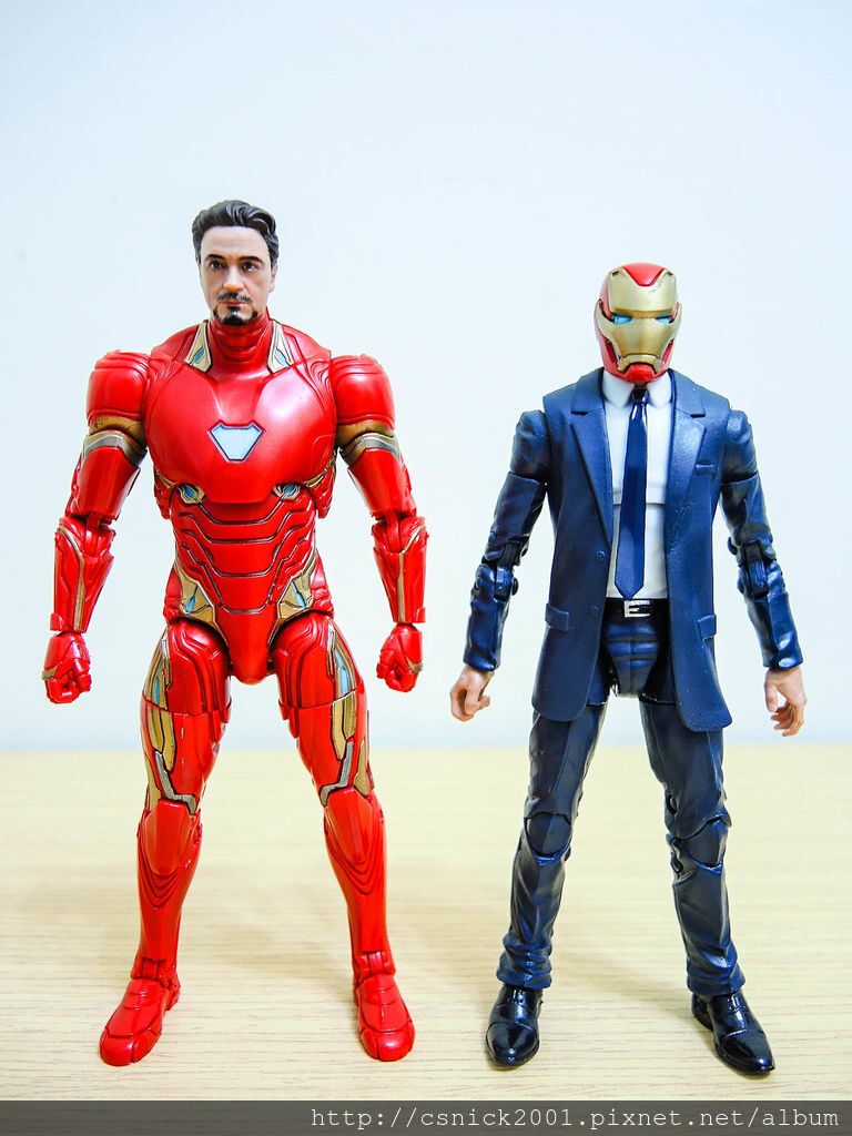 跟 SHF 鋼鐵人3 東尼史塔克合照,頭雕部份 SHF 比較優一點,不過身形的話 ML 比較粗壯些!!